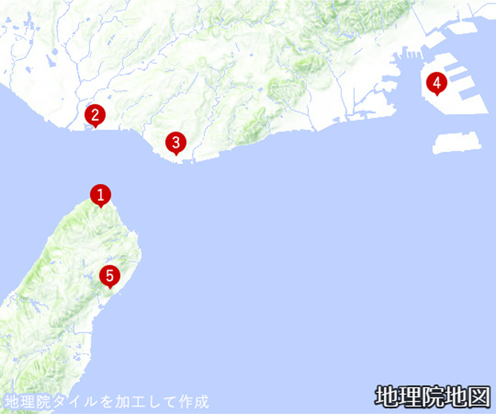 | 5 | 小島 | 大阪府岬町多奈川小島 |