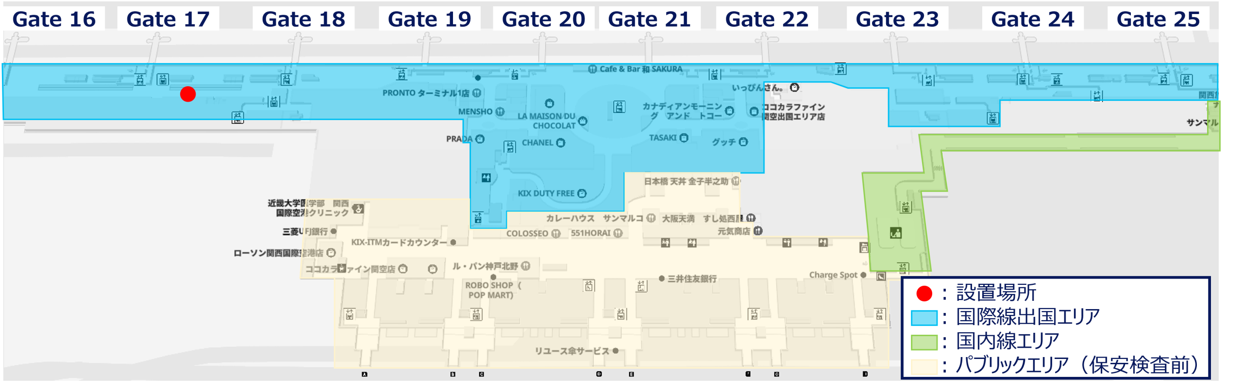 〇 設置場所:関西国際空港 第1ターミナルビル 2階 国際線出国エリア(17・18番ゲート付近)